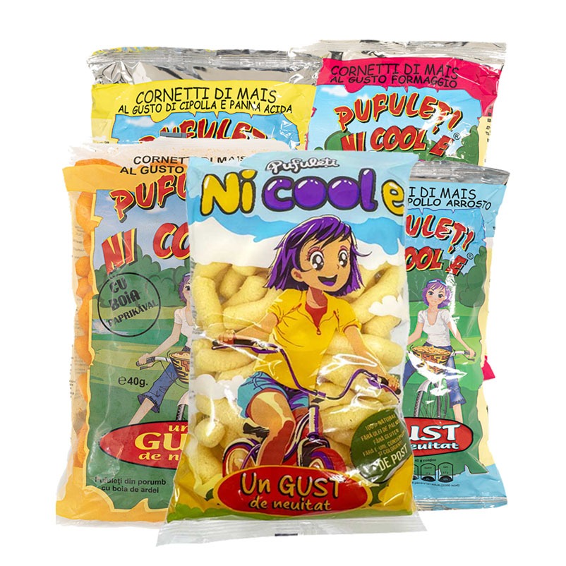 • 1 cutie cu 3 saci a câte 20 de pungi de pufuleți cu arome, la alegere (ceapa și smântână, brânză, pui, pufuleți cu chimen). Un sac conține 20 de pungi identice.